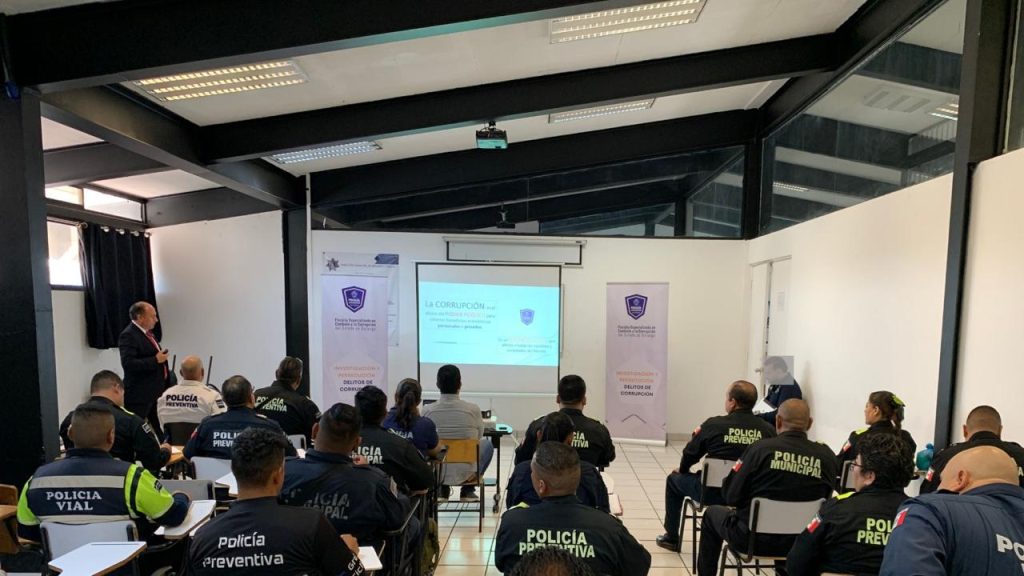Con el fin de fomentar la cultura de la legalidad y promover la ética e integridad de los agentes de seguridad pública estatales y municipales, la Fiscalía Especializada en Combate a la Corrupción lleva a cabo acciones de capacitación a elementos de diversas corporaciones policiacas.