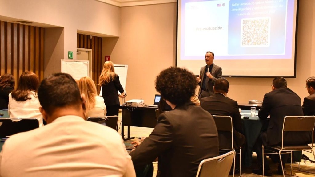 Esta actividad, que contó con la asistencia de fiscales de 25 entidades federativas de nuestro país, tuvo como objetivo mejorar la cooperación entre fiscalías y fortalecer los conocimientos y habilidades para investigar y enjuiciar casos complejos de corrupción.