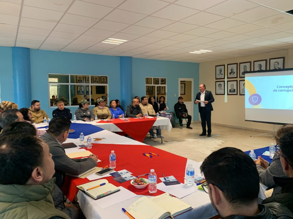 En gira de trabajo por la región, personal de la Fiscalía anticorrupción se reunió con del Presidente Municipal Dr. Octavio Carrete Carrete, las y los integrantes del Ayuntamiento de El Oro y funcionarios de primer nivel, para dar a conocer el funcionamiento de esta Institución, los delitos que se persiguen y la obligación de las contralorías municipales de prevenir y denunciar los hechos de corrupción.