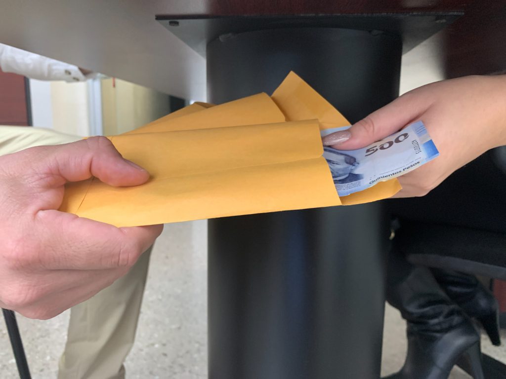 Fue a través de una exitosa operación encubierta, autorizada por esta institución y llevada a cabo por la Policía Investigadora de Delitos de Corrupción, que se verificaron los hechos denunciados identificando el modus operandi del señalado, consistente en el cobro extraoficial de una cantidad de dinero por realizar una actividad relacionada con sus funciones y en omitir diversos requisitos como la presentación del vehículo y la papelería original del mismo, por lo que se procedió a la detención en flagrancia del servidor público en mención,