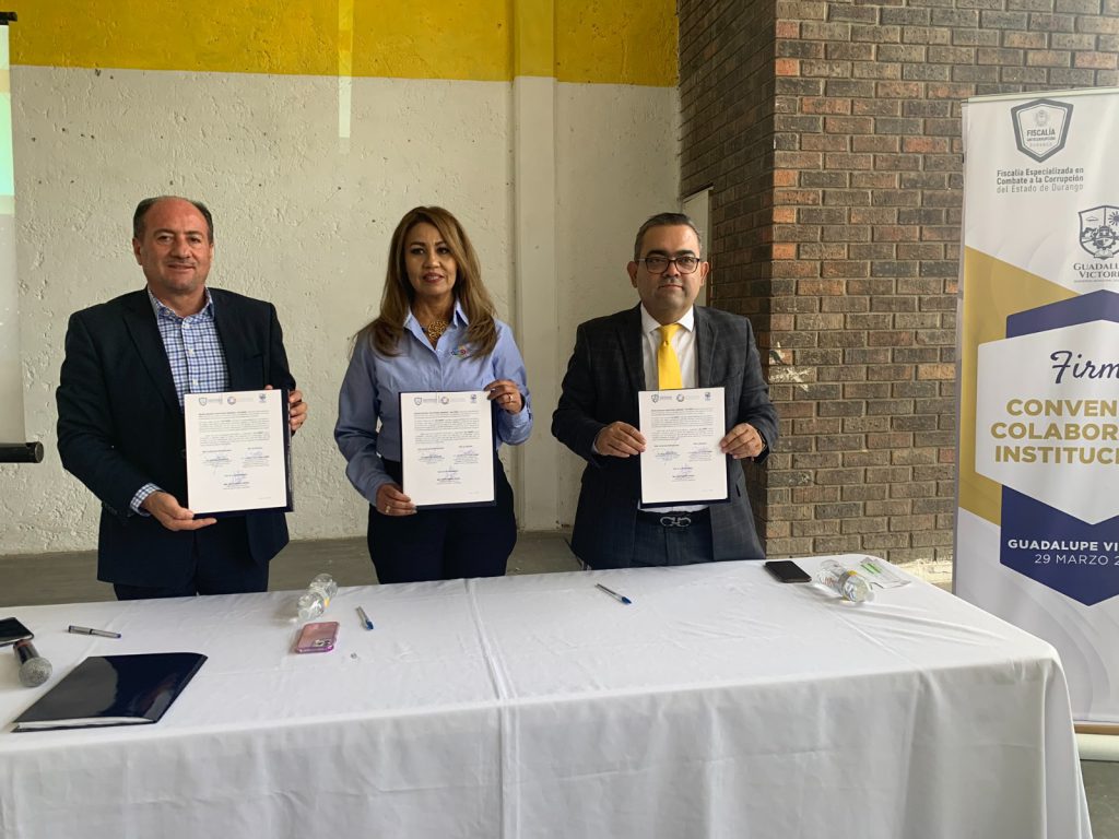 Al realizar la firma de un convenio de colaboración con el Gobierno Municipal de Tepehuanes, el fiscal anticorrupción Noel Díaz Rodríguez, destacó la importancia de la colaboración institucional en la prevención, disuasión, detección, denuncia y sanción de los actos y hechos de corrupción.